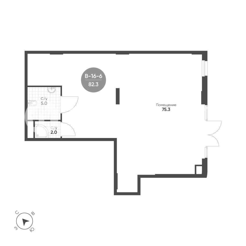 Продается помещение свободного назначения , по адресу г. Москва, ЮАО, ул. Автозаводская, вл. 23, корпус Жилой квартал Shagal, 4 очередь, 2 этап, корпус 6 - встроенные помещения в Shagal на 1 этаже, с площадью 82.3 м2.