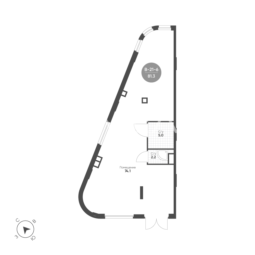 Продается помещение свободного назначения , по адресу г. Москва, ЮАО, ул. Автозаводская, вл. 23, корпус Жилой квартал Shagal, 4 очередь, 2 этап, корпус 6 - встроенные помещения в Shagal на 1 этаже, с площадью 81.3 м2.