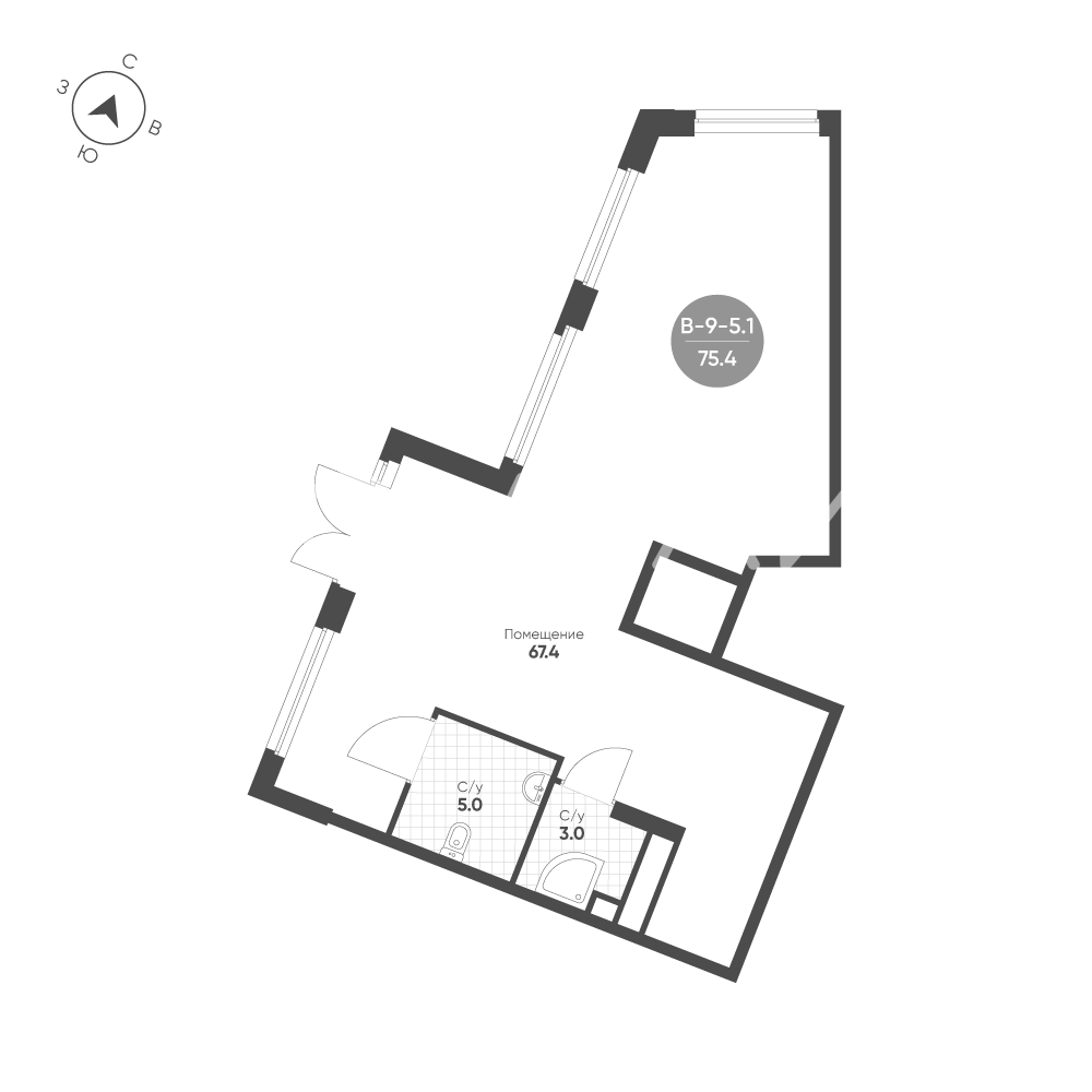 Продается помещение свободного назначения , по адресу г. Москва, ЮАО, ул. Автозаводская, вл. 23, корпус Жилой квартал Shagal, 4 очередь, 2 этап, корпус 5 - встроенные помещения в Shagal на 1 этаже, с площадью 75.4 м2.