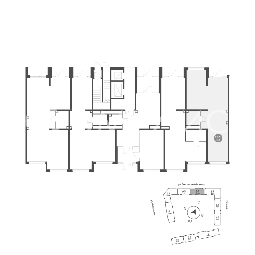 Продается помещение свободного назначения 22, по адресу Свердловская область, г. Екатеринбург, Золотистый бульвар, 18, корпус Солнечный, блок 6.4- встроенные помещения в Солнечный на 1 этаже, с площадью 66.1 м2.