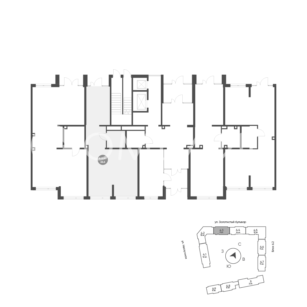 Продается помещение свободного назначения 16, по адресу Свердловская область, г. Екатеринбург, Золотистый бульвар, 18, корпус Солнечный, блок 6.4- встроенные помещения в Солнечный на 1 этаже, с площадью 66.6 м2.