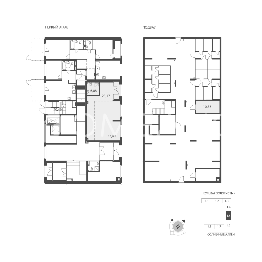 Продается помещение свободного назначения -1, по адресу Свердловская область, г. Екатеринбург, бульвар Золотистый, 19, корпус Солнечный, корпус 5.3-встроенные помещения в Солнечный на 1 этаже, с площадью 64.6 м2.