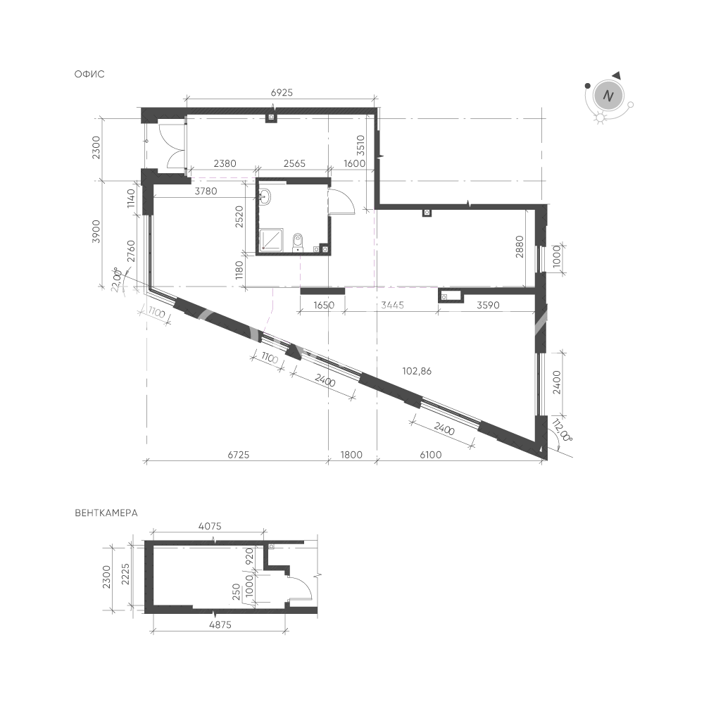 Продается помещение свободного назначения -1, по адресу Свердловская область, г. Екатеринбург, б-р Вдохновения, 4, корпус Солнечный, блок 5.4, корпус 1 - встроенные помещения в Солнечный на 1 этаже, с площадью 102.86 м2.