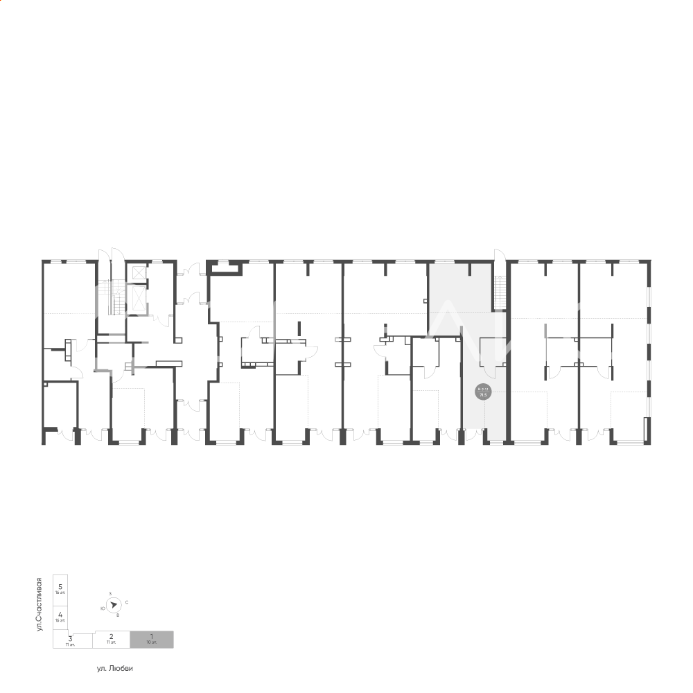 Продается помещение свободного назначения , по адресу Свердловская область, г. Екатеринбург, ул. Любви, 4, корпус Солнечный, блок 11.2 - встроенные помещения в Солнечный на 1 этаже, с площадью 71.5 м2.