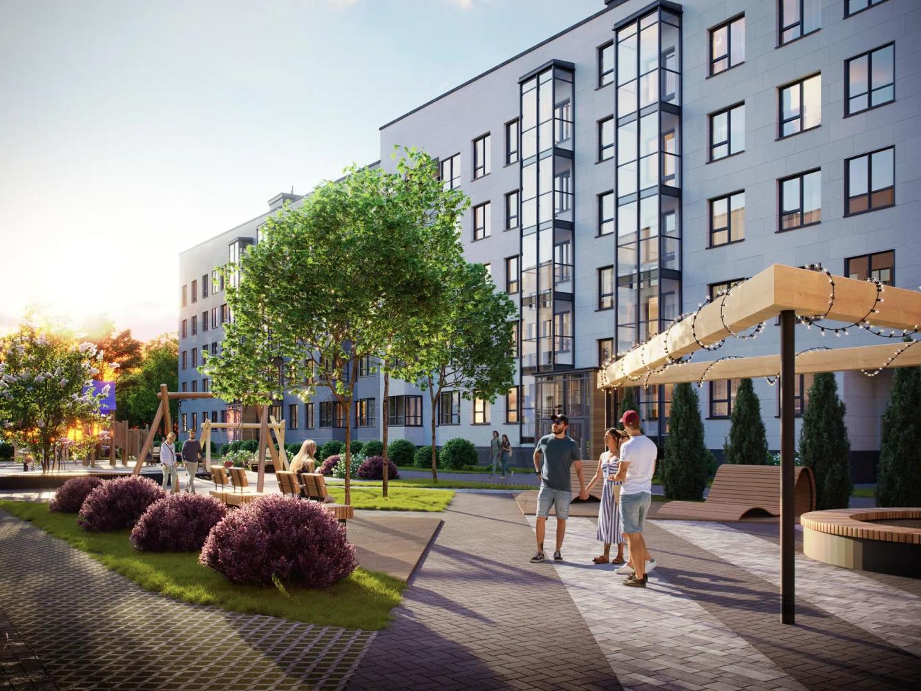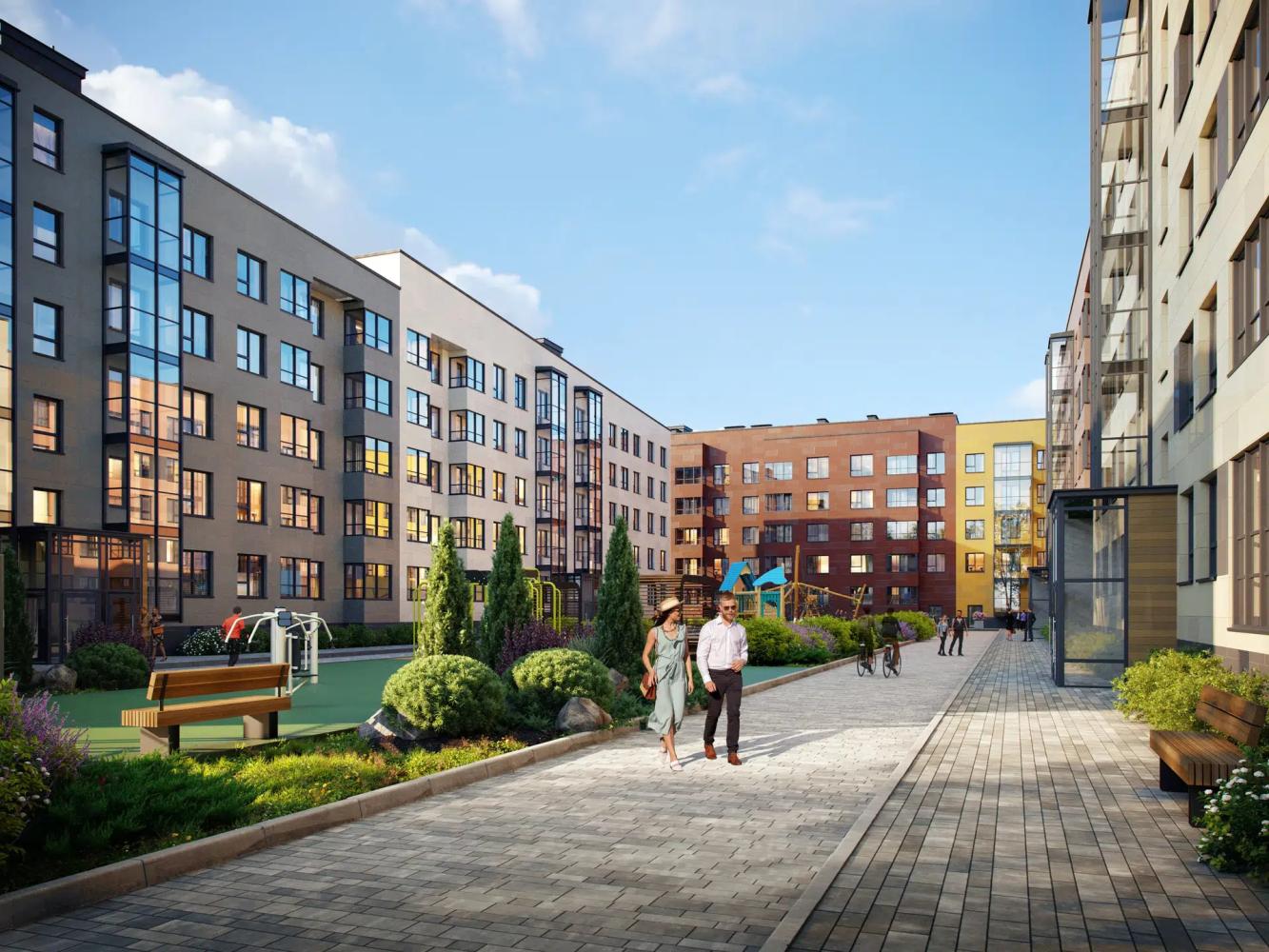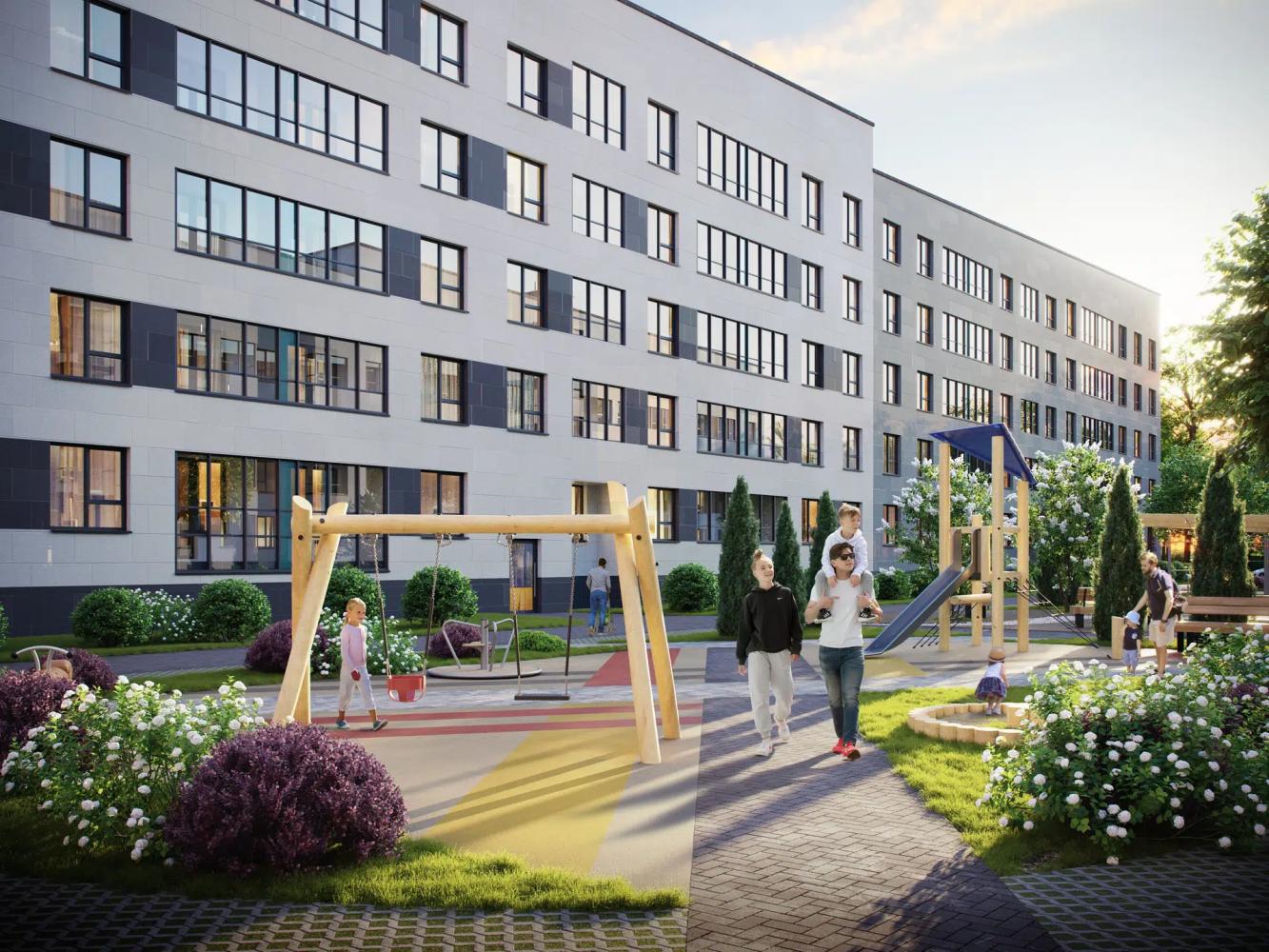 Двор без машин: уютный эко-двор с озеленением, зонами отдыха, детскими площадками, тренажёрами и велопарковками. Есть система дренажа, поэтому после дождя не будет луж.