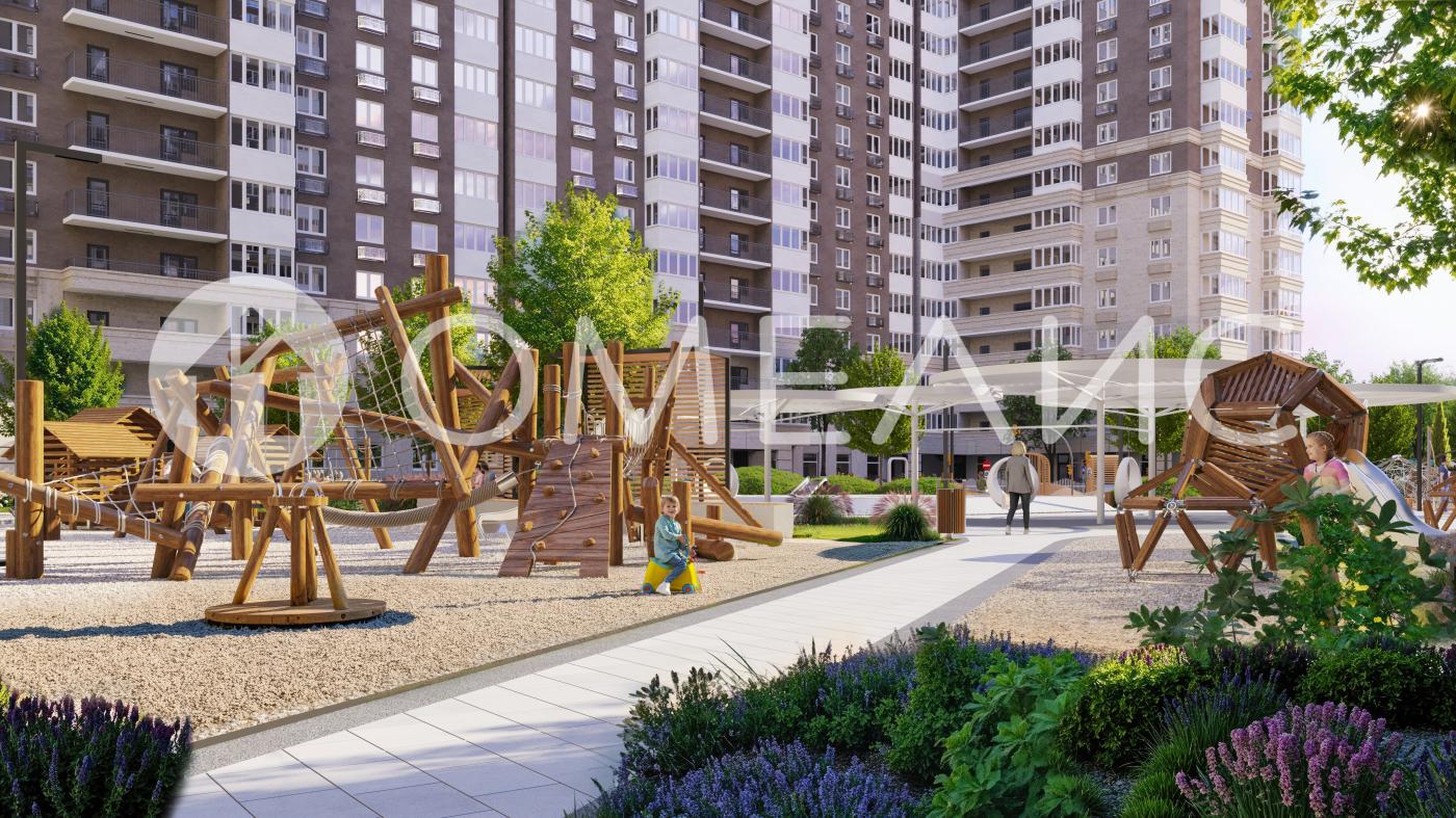 Во дворах реализована концепция «активити-парка» — это большое зелёное пространство для отдыха и занятий спортом: