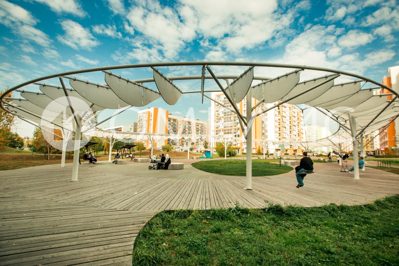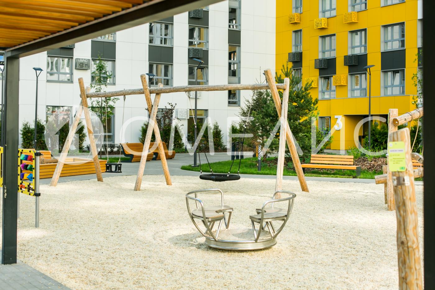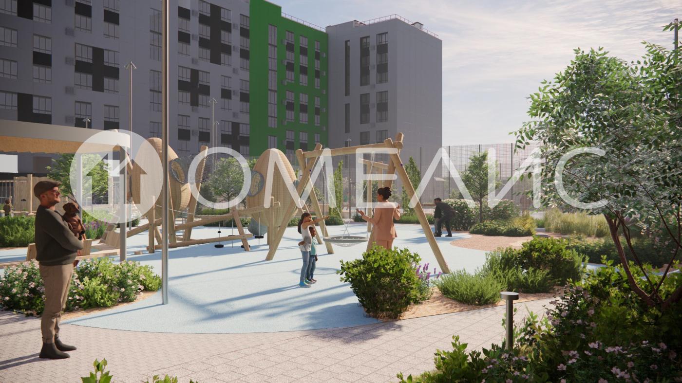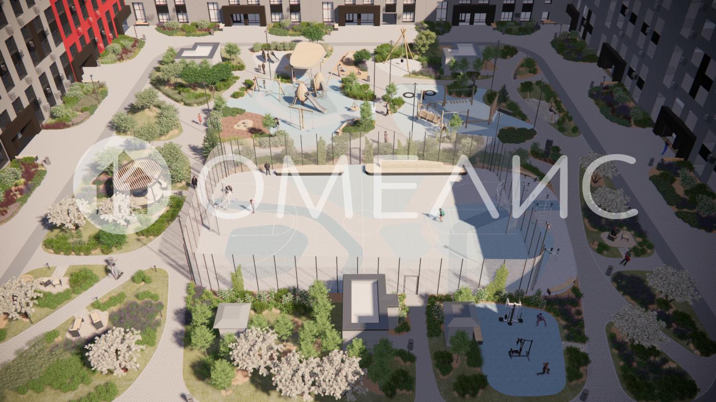В доме – приватный двор-парк с сенсорным садом. Инфраструктура двора включает в себя игровые площадки из природных материалов для раннего развития малышей, тренировки интеллекта и мелкой моторики, спортивные и воркаут-пространства, уютные релакс-зоны с беседками и теневыми навесами, прогулочные аллеи. Дендроплан двора-парка разрабатывался со специалистами ведущих ландшафтных бюро. На территории дворов будут высажены многолетние цветущие растения, которые функционально разделят локации и создадут приватные пространства для отдыха и прогулок.