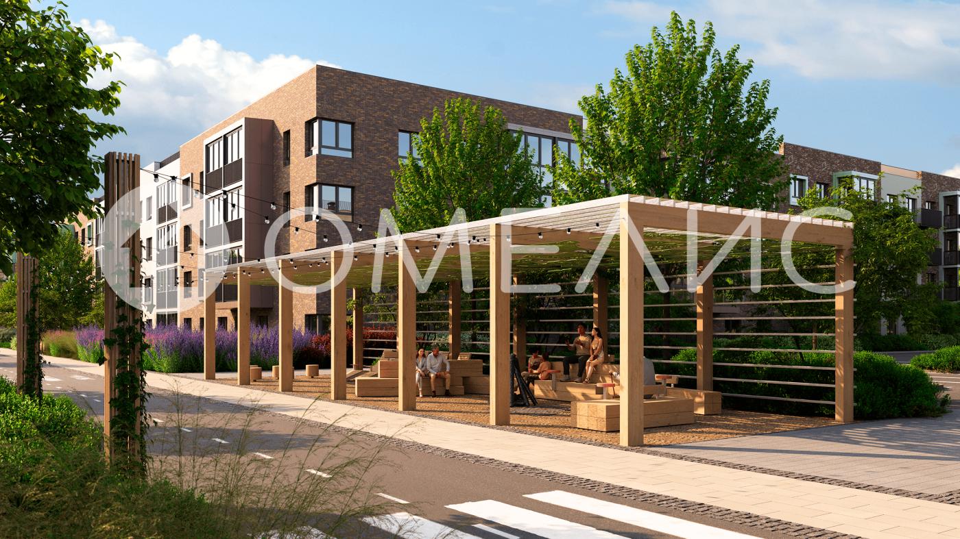 Комплекс состоит из малоэтажных домов квартальной застройки, создающих приватные дворы без машин. Высота в 4 этажа обеспечивает уют и простор. Урбан-виллы с террасами отделены приватными садами и прогулочными зонами. Фасады из клинкерной плитки натуральных оттенков подчеркивают природное окружение. Дома расположены таким образом, чтобы из квартир открывались виды на лесопарк или сад.