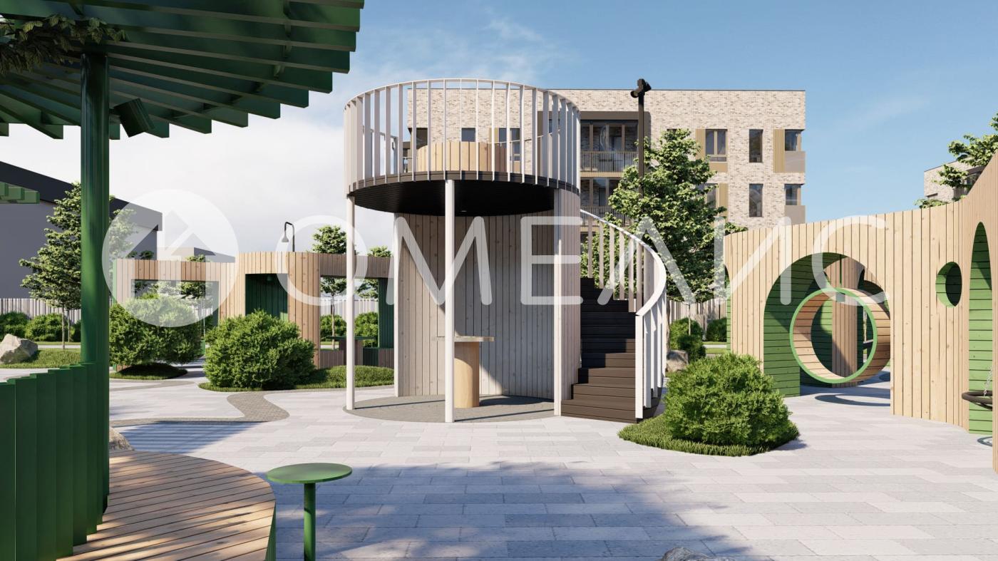 Комплекс состоит из малоэтажных домов квартальной застройки, создающих приватные дворы без машин. Высота в 4 этажа обеспечивает уют и простор. Урбан-виллы с террасами отделены приватными садами и прогулочными зонами. Фасады из клинкерной плитки натуральных оттенков подчеркивают природное окружение. Дома расположены таким образом, чтобы из квартир открывались виды на лесопарк или сад.