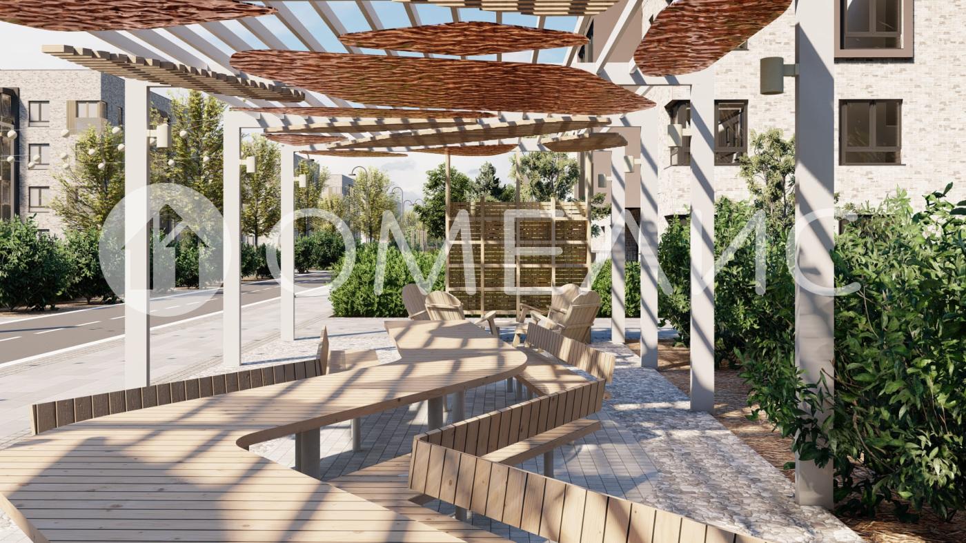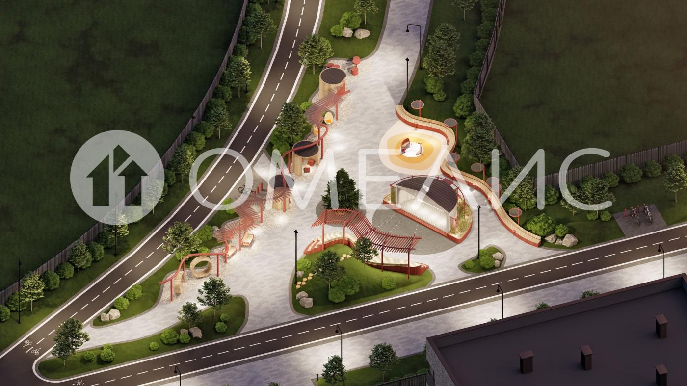 Территория выполнена в виде сенсорных садов, отражающих времена года с соответствующей растительностью. В центре расположен парк с различными зонами: центральная площадь, пруд с набережной, игровые площадки для детей, йога-парки, экотропа, спортивный хаб, скейтпарк, памптрек, велодорожки.