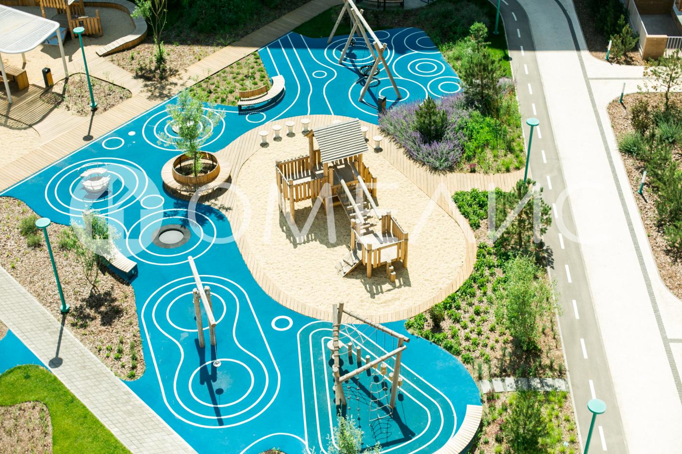 Места для отдыха организованы и внутри дворов. Игровые локации для детей, воркаут-зоны, спортплощадки для футбола, волейбола, баскетбола, позволят найти развлечения по интересам. Покрытия детских площадок и прогулочных зон выполнены из природных материалов.