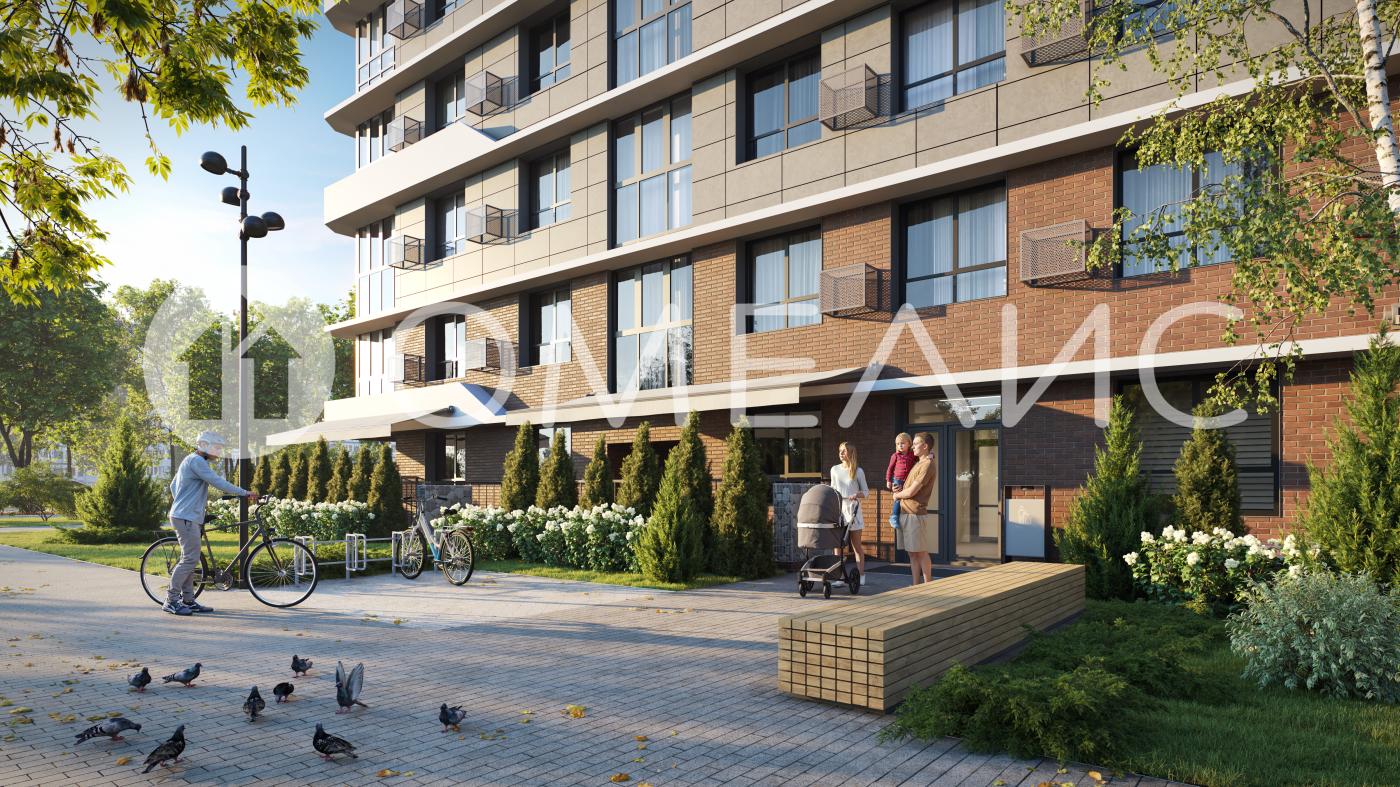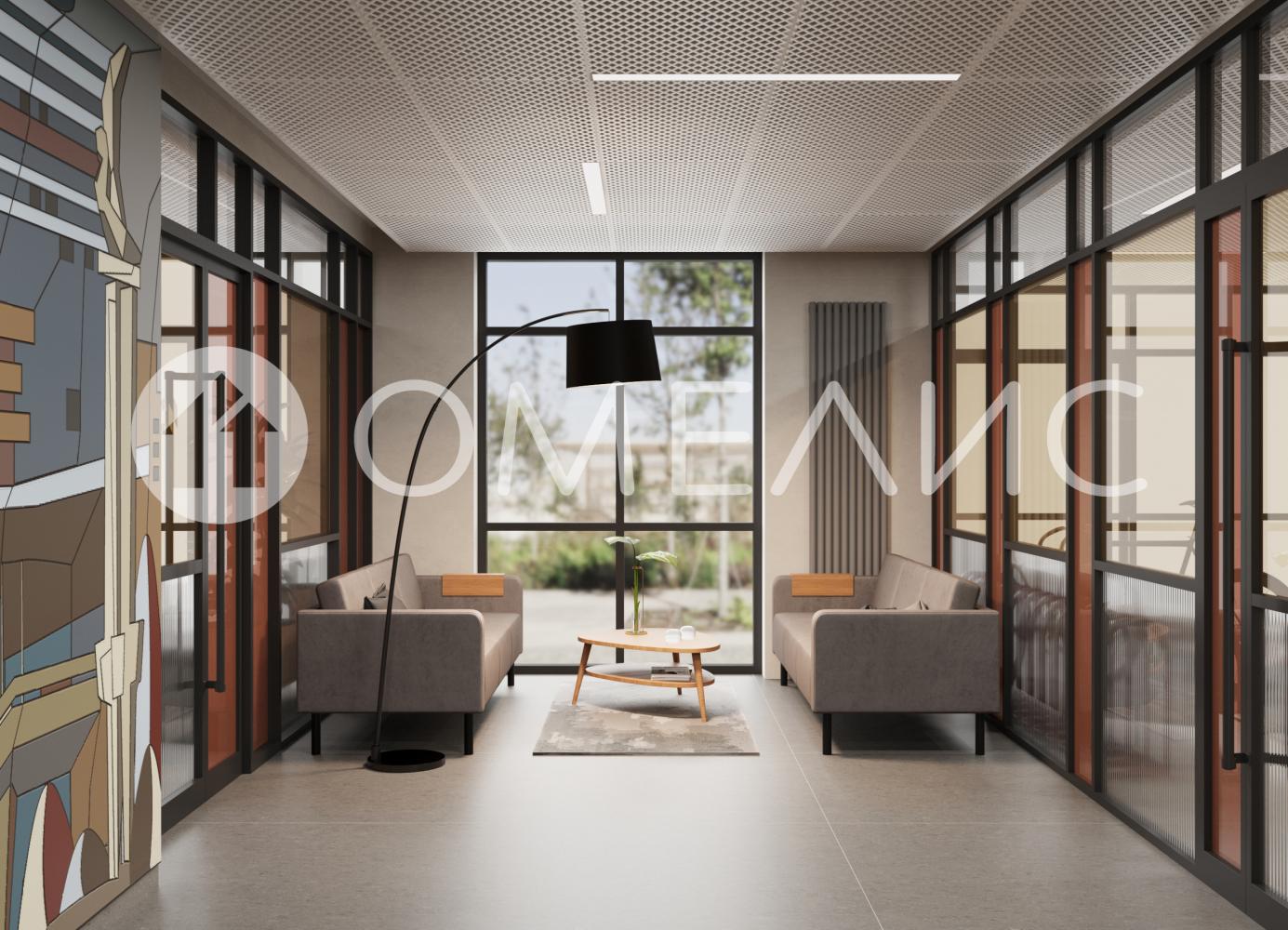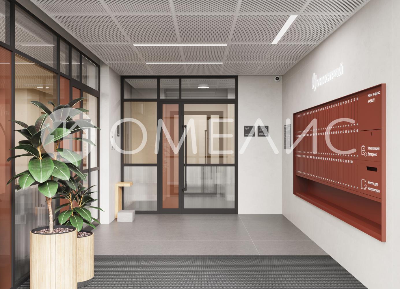 Бесступенчатые входные группы выполнены в натуральных природных оттенках, а плавные переходы делают перемещение комфортным для всех жителей. В дизайнерском холле предусмотрена зона ожидания. Есть сквозной проход в помещение для хранения колясок. Дизайн в стиле постсоветского модернизма придаёт проекту особую узнаваемость. Вы будете чувствовать связь времён — ностальгическую теплоту и гордость за современную, стильную эстетику, уникальный и культурный код места.