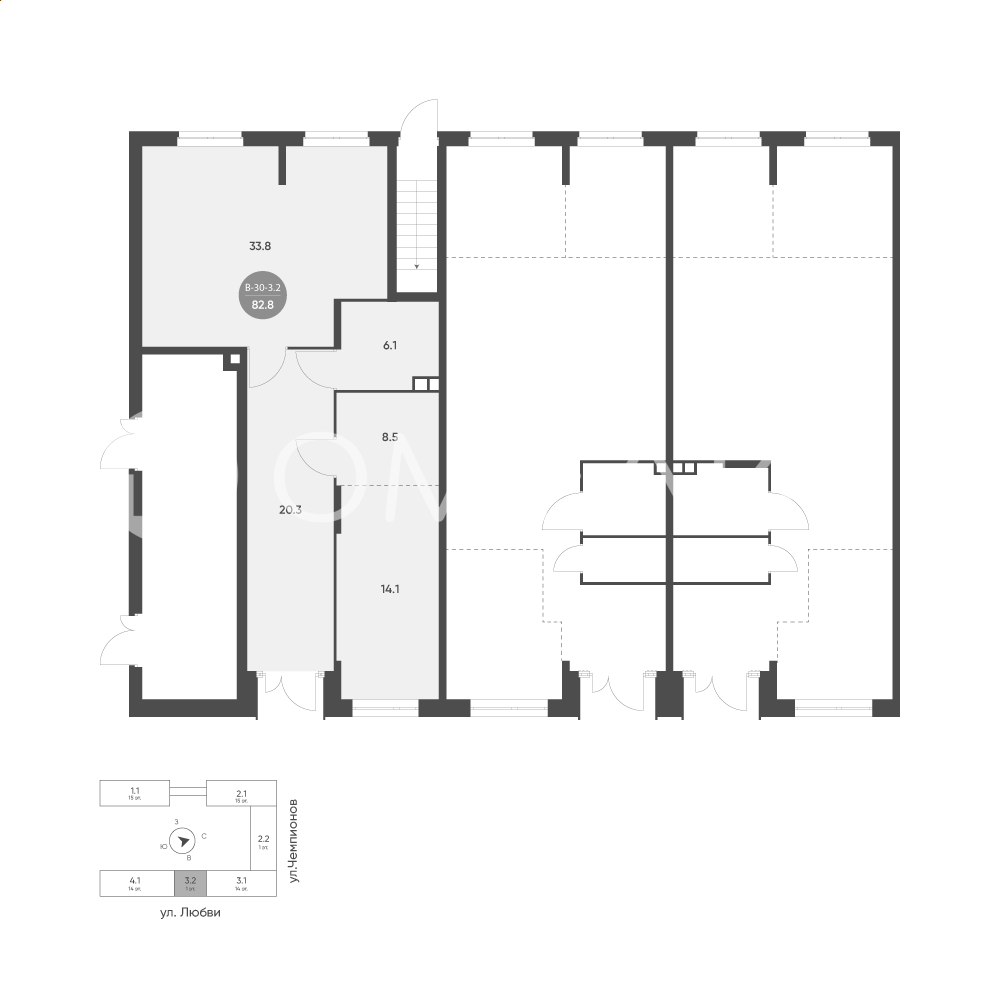 Продается помещение свободного назначения , по адресу Свердловская область, г. Екатеринбург, ул. Любви, 2, корпус Солнечный, блок 11.1- встроенные помещения в Солнечный на 1 этаже, с площадью 82.8 м2.