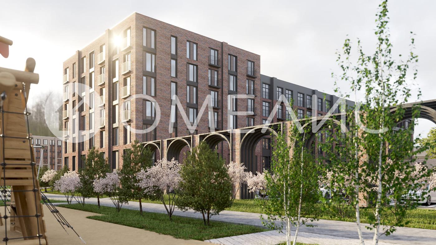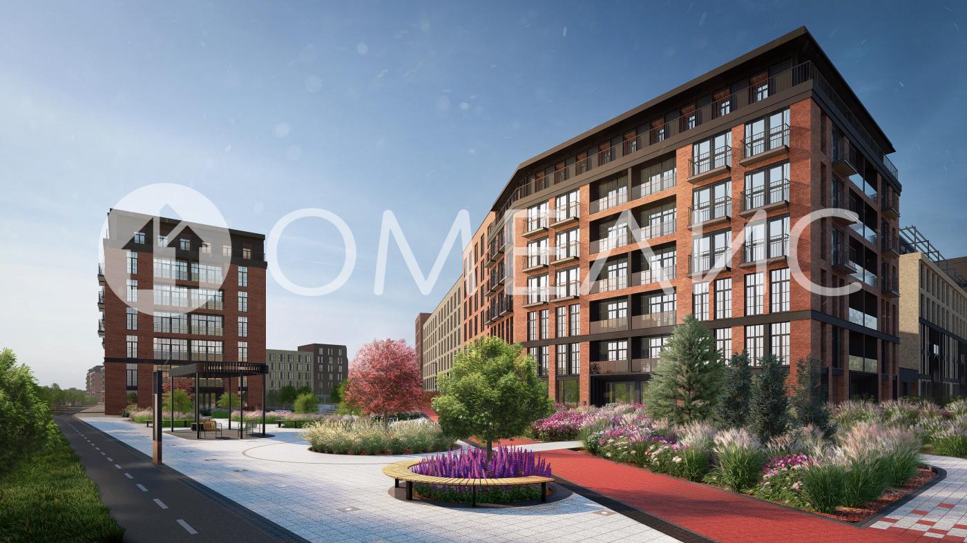 Экстерьер выполнен в английском промышленном стиле: фасады из керамического кирпича подчёркивают строгость и историю. Обилие стекла, вертикальные балки и арочные конструкции создают гармоничный современный облик.